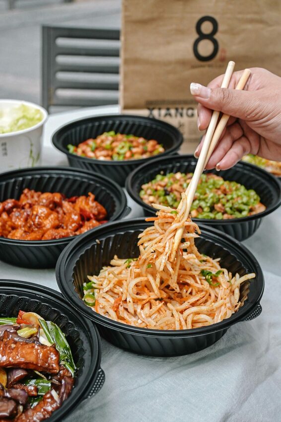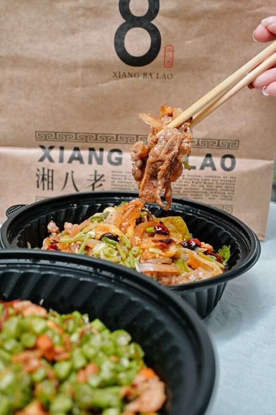 湘八老承襲彭園七十多年深厚的廚藝技術,將湘菜重新演繹,其中必點經典招牌名菜「左宗棠雞、生菜蝦鬆、彭家豆腐、富貴烤雙方、剁椒魚頭、剁椒臭豆腐」,這次我將這些經典打包外帶回家,細細品味一甲子老味道。