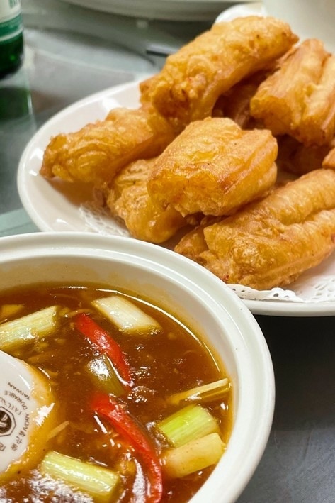 一份是6個,所以我們點的是廚房幫忙配的數量.自製的蝦泥飽滿的塞在油條中.炸得酥脆不油膩的外皮和滿滿的蝦漿即使沒有沾醬也非常好吃.