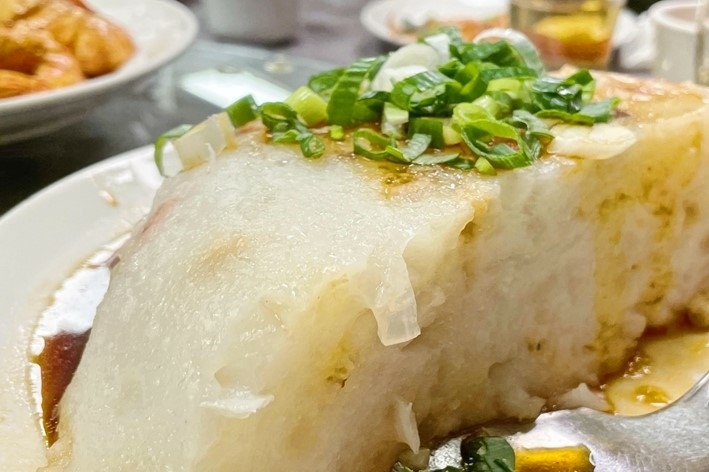 如果一定需要澱粉才有飽足感的人請點店裡手作的蘿蔔糕吧!港式蘿蔔糕比起台式比較吃不出蘿蔔絲的口感.但也因此主體更細緻柔軟.九記的蘿蔔糕卻在柔軟中帶著彈性,即使帶回家冷著吃都還超好吃!!