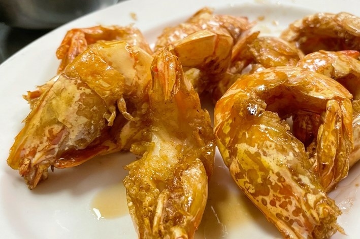 草蝦也和螃蟹一樣是稱重的,生抽蝦是大排檔很常出現的料理,炸過的大草蝦用醬油乾燒上醬色, (就是台灣的淺色醬油淺淺上色),淺淺的醍醐味,點出新鮮蝦的鮮美!