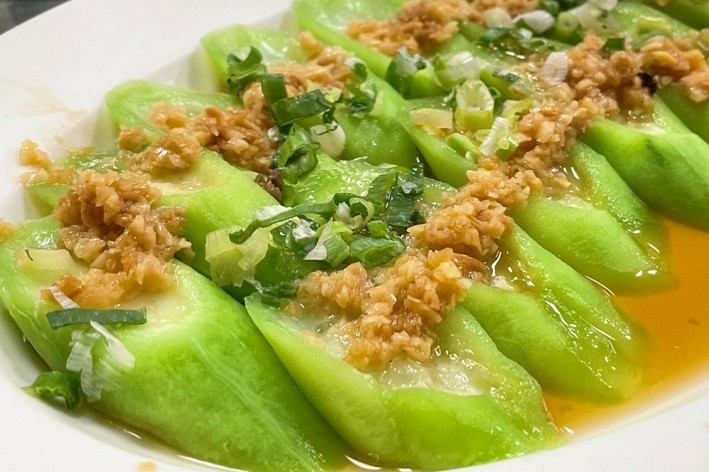 其實勝瓜就是我們台灣的澎湖絲瓜,但因為絲瓜在廣東話中聽起來不吉利,所以這款絲瓜就被稱作勝瓜. (常見圓圓的就被叫做水瓜.) 勝瓜因為外型堅挺,不易發黑,做菜比較美觀非常常在粵菜中出現.只要選得不老的基本上不會出現雷.