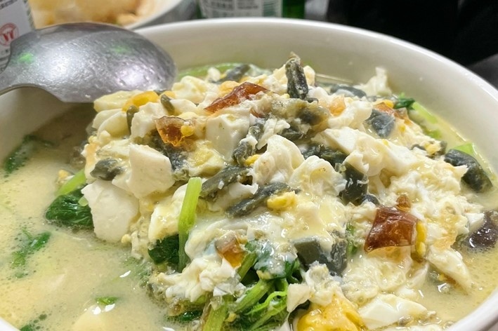 超大氣放鹹鴨蛋和皮蛋的金銀蛋!.不同於外面只有莧菜的方式,九記還加入的菠菜.比較有咬感.起鍋前還淋上一般蛋白液,讓人欲罷不能,我都吃到超飽還停不下筷.