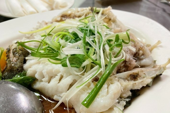 筍殼魚是一種長得很醜可是非常好吃的魚種,真正的名稱是斑駁尖塘鱧. 因為外皮顏色似筍殼才有此稱.肉厚白嫩細緻,骨大刺少,也被稱為是泰國的國寶魚.雖然剃骨上桌賣相不那麼好.但分食上也方便許多.僅僅用熱油與蒸魚醬油調味,鮮美到差點咬到自己的舌頭.