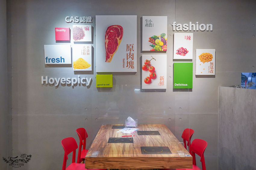 極簡約清水模與純白拼牆,貼上可愛的火鍋圖,營造的氛圍帶點網美又給人有與好友家人圍在一起吃鍋的氣氛,讓人留下深刻的好印象。