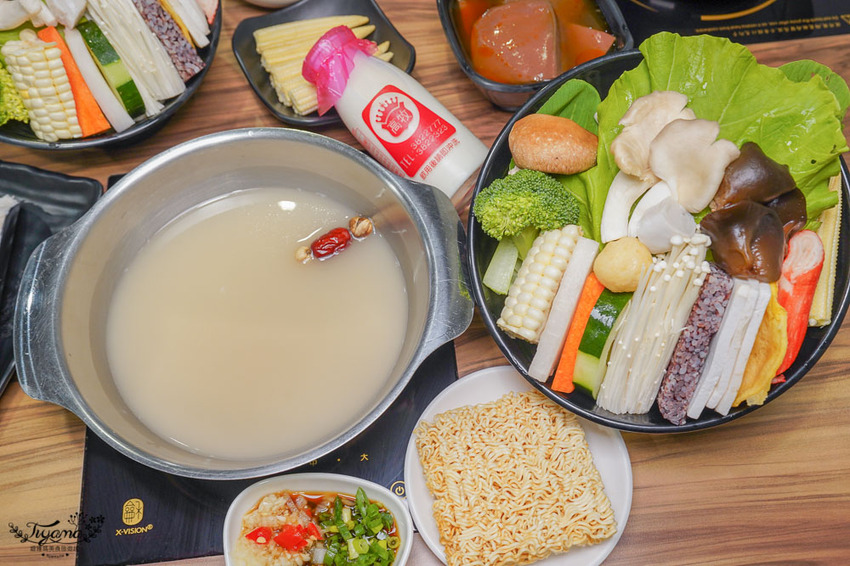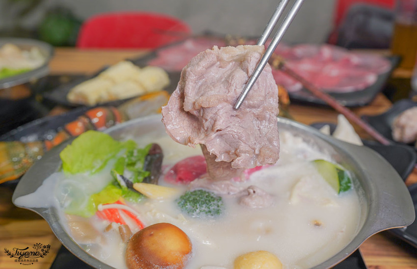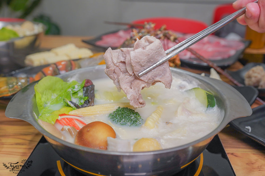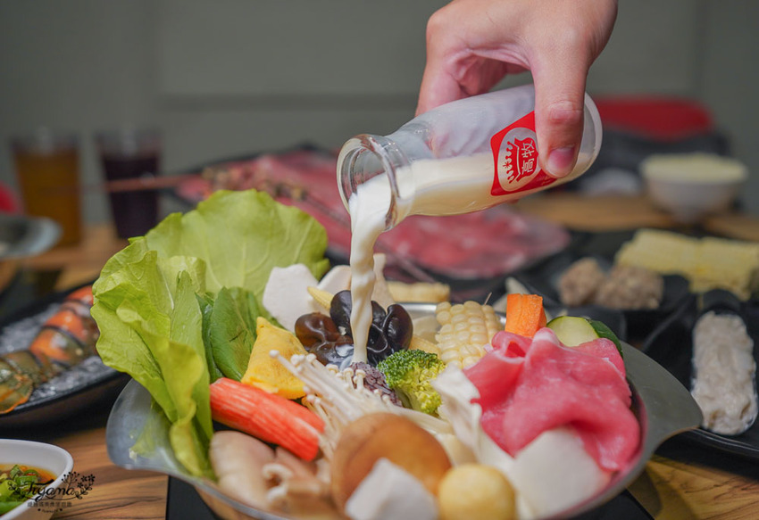 一次2種享受的「上湯龍骨鍋+鮮奶」,可先吃原味龍骨鍋再加入高大鮮奶變身為牛奶豚骨鍋。