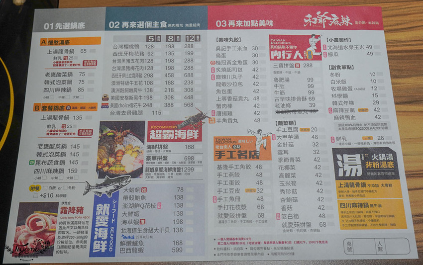 「和爺麻辣 四川麻辣鍋-就愛這鍋」走的是中價位高等級食材,從鍋底湯頭到肉品海鮮皆作出精緻度,在平價小火鍋與高檔火鍋中間走出自己的風格,想吃好食材又怕預算不足,來這裡可依照你的預算作選擇…同樣能吃得開心滿足。