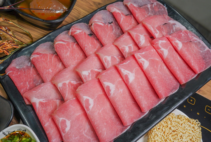一般外面的火鍋肉量大約是5盎司/約8片,想與家人共享一次點足12盎司,台灣黑豬梅花肉的油脂恰到好處,香甜帶點嚼勁。
