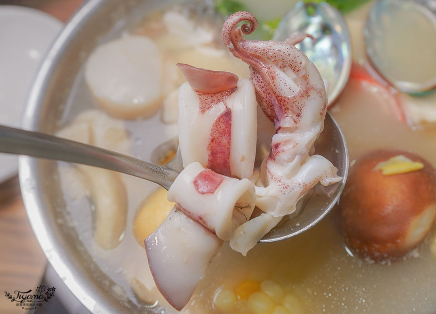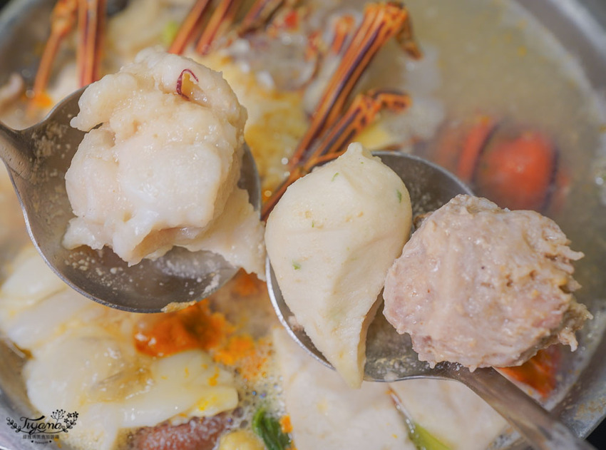 好鮮好甜的手打花枝漿吃得到整塊花枝,芋角貢丸一定要點,咬下去就吃得到整塊煮軟的芋角,桂冠黃金魚蛋要小心燙口,裡頭的魚蛋鹹香味美,都是人氣火鍋常勝軍。