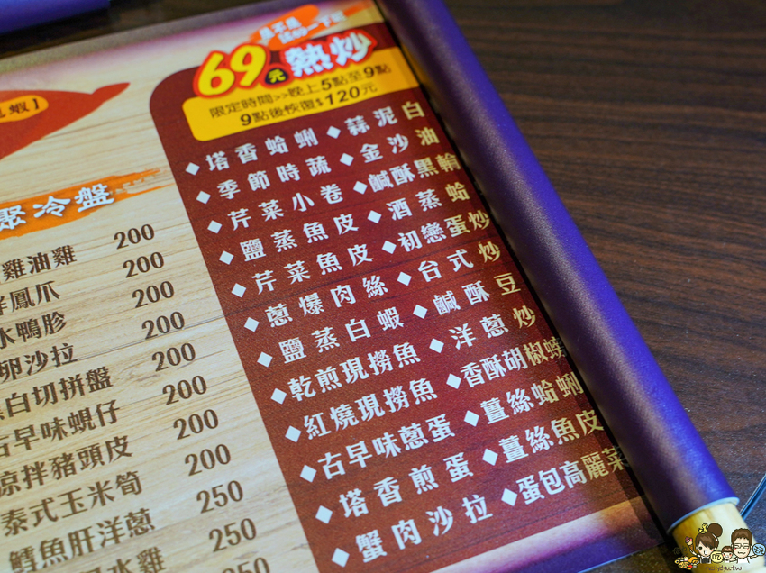 晚上5點~9點,120元熱炒全面優惠69元,太超值了!