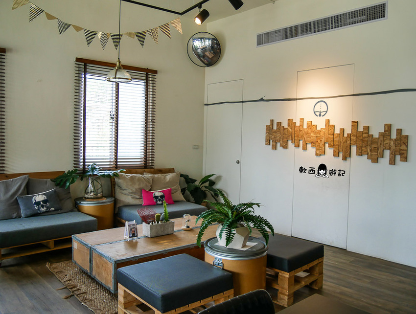 這次參加的是鈦美旅行社的露營車一日遊,我們從福隆海水浴場看完沙雕後就來到B1鼻頭1號喝咖啡休息。B1鼻頭1號環境高挑舒適,座位數雖然不多,但闆娘用大量綠色植物點綴各個小角落,沙發搭配木質地板,很像在某個人的家中客廳,辦個小小派對的感覺,姐妹踏進B1鼻頭1號直嚷嚷這邊非常chill。