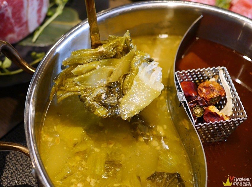 ▲成都酸菜魚一端上桌就可以聞到撲鼻的胡椒香氣!是一般吃到飽火鍋裡很少見到的湯底口味~他除了胡椒以外還有花椒提味!裡面有滿滿的酸菜!喝起來酸香回甘!相當特別!