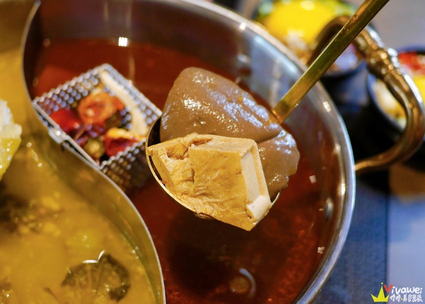▲川府麻辣鍋有麻有辣也有香,吃起來大約是中辣等級,不過辣度都可以依據個人口味,請服務人員協助調整!裡面加了入味的鴨血和凍豆腐,這些吃完都可以無限續加唷!