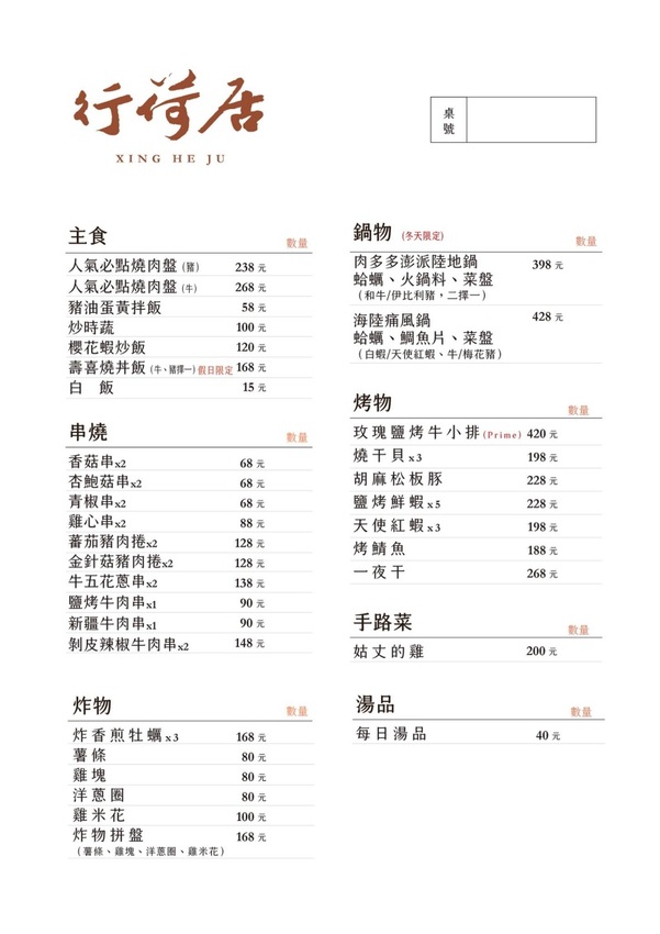 - 營業時間:17:00-22:00(平日)/11:30-22:00(假日),週二固定公休