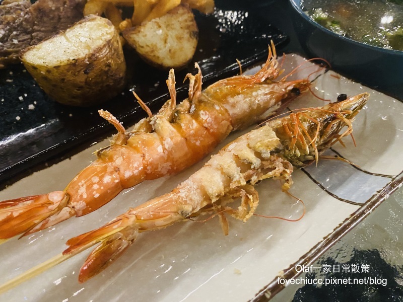 套菜還有兩隻大白蝦,皆是玫瑰鹽佐料