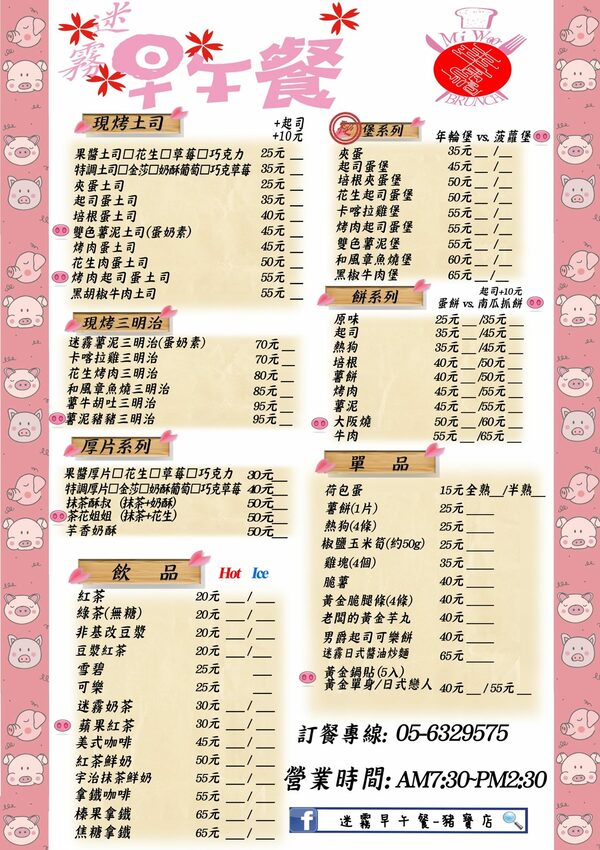 迷霧早午餐豬寶店菜單