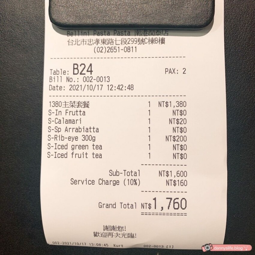 最後附上這次用餐的帳單~