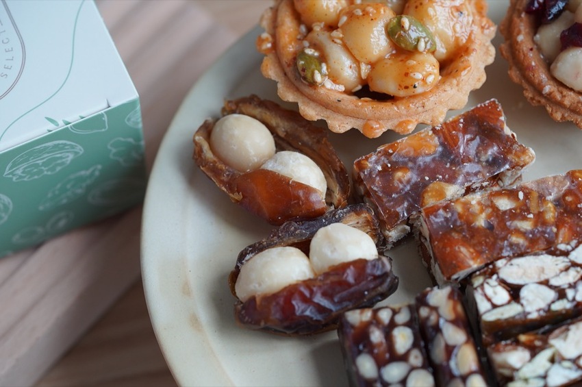 被封為網路美食人氣王的「夏威夷潛艇」 ,選用頂級中東椰棗包裹澳洲夏威夷豆製成,椰棗經由手工去籽處理後,軟嫩的果肉配上有酥酥脆脆的夏威夷豆,口感豐富又具有層次!「太妃糖」同樣選用了「法國依思尼奶油ISIGNY」,焦糖香氣瀰漫在空氣中,一口咬下可以吃到滿滿的杏仁內餡,甜而不膩且不黏牙,嘴饞的時候來一塊最對味。