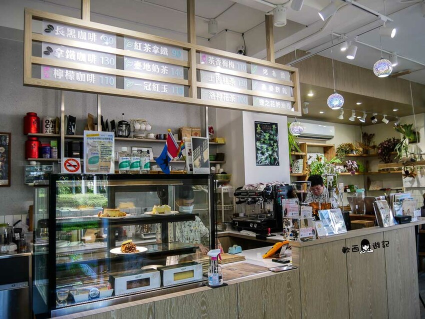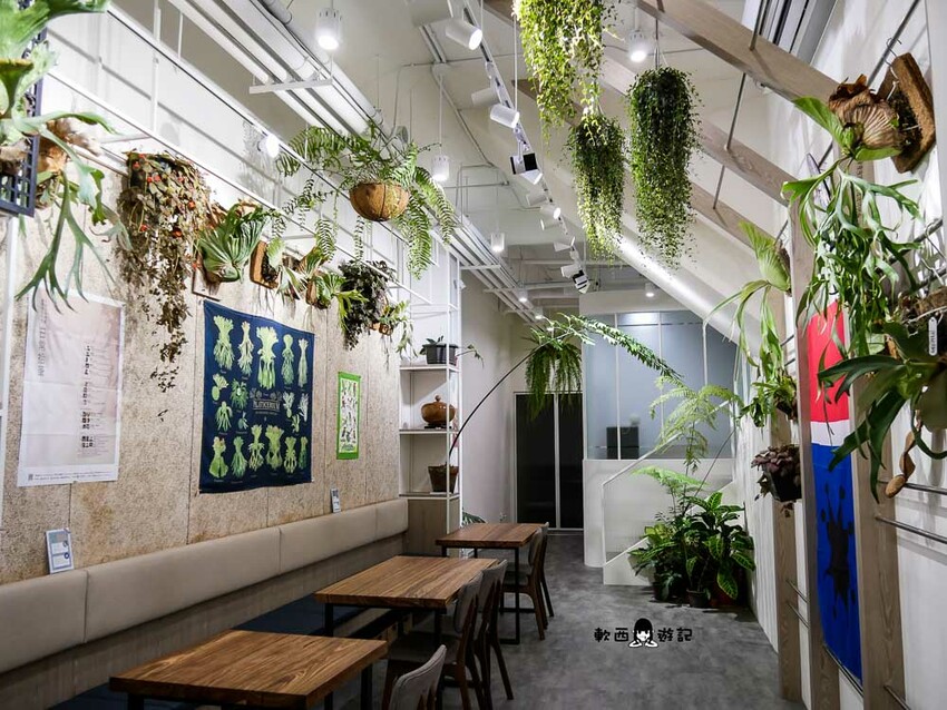 下個樓梯轉彎才讓人大開眼界,書帶蕨樓下用餐空間也太寬闊了吧!好像來到了溫室玻璃屋,明明就是地下室卻有超高挑空間,綠色植物或從牆上突出、或從天花板垂墜而下,又或者在小角落看到一株株綠色小淘氣,路過時頑皮輕輕勾扶衣角,等你回過神來瞧他一眼,他又害羞別過頭去。很少看到咖啡廳有這麼多綠色植物,根本就是植物玻璃屋了吧,只能說這空間對眼睛放鬆很有幫助(誤。