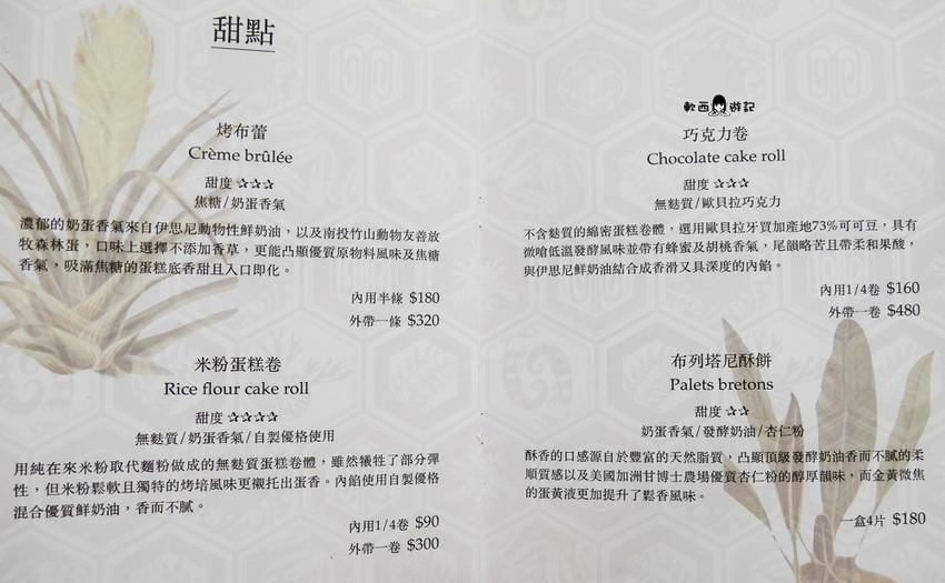 巧克力卷走大人系苦甜,很像小時候吃到的一種毛巾蛋糕,外層鬆鬆軟軟,裡頭慕絲奶油卻細緻像泡泡一樣化在口中,雖然小小一卷但相當紮實,一口茶、一口巧克力,清甜苦潤全在一塊兒,比起布丁的蜂蜜甜,軟西還比較喜歡這巧克力的多層次。