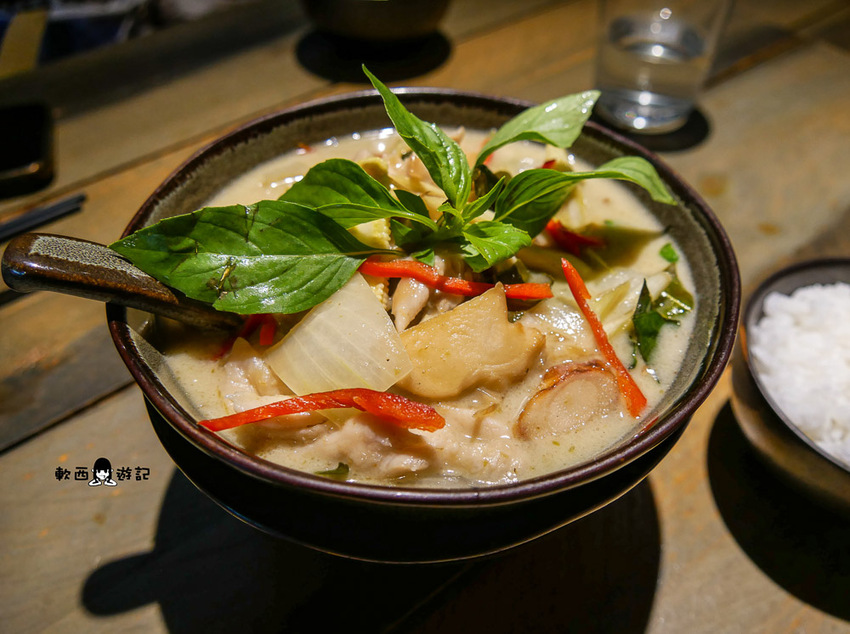 綠咖哩香氣濃郁,淡淡椰奶滋味溫順潤滑,雖然菜單上畫一條辣椒,但完全不覺得辣口耶!