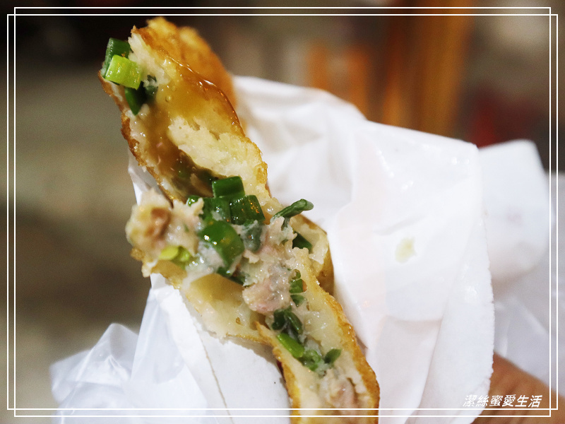 一口咬下,以半煎炸而成的外皮酥香蓬鬆,裡頭包著新鮮蔥花與肉末,整個蔥甜肉鹹香,有夠好吃!