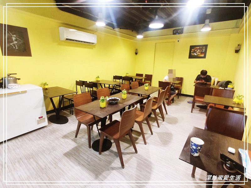 室內裝潢乾淨整潔,暖黃色系及燈光,是家庭小料理氣圍。