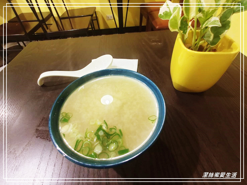 有海帶芽/豆腐/鯛魚片,湯頭清爽,只是味噌濃度過淡覺得比較可惜。