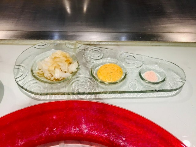 佐料,洋蔥、醬料、海鹽。