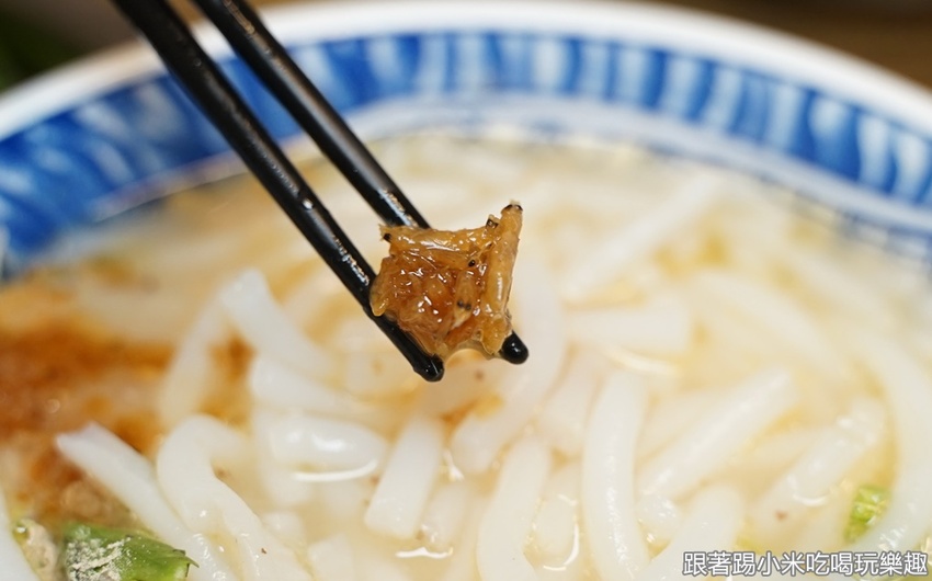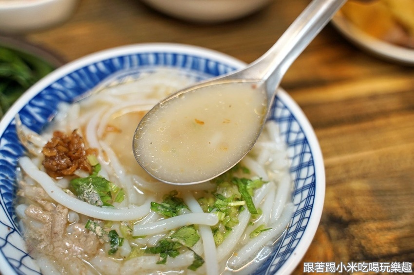 跟以前吃的口味一樣沒有變,爽滑帶脆口的粗米粉吸著甜美湯頭單吃就很棒了,大家可以先喝湯頭去感受大骨清湯的甜與小蝦米組合出來的鮮香甜滋味