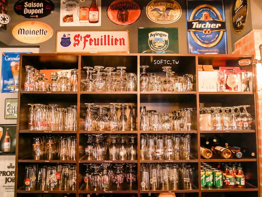 在ABV的各種精釀啤酒可是一點都不馬虎,不同款式啤酒搭配的杯子也不盡相同,為了呈現精釀啤酒最棒的風味,餐廳一角放著至少數10來種杯子,我想在ABV工作的員工們腦袋都挺好的,不然這300多種啤酒加上不同杯子,光用看的軟西就眼花撩亂了XD還是交給專業的來吧哈哈。