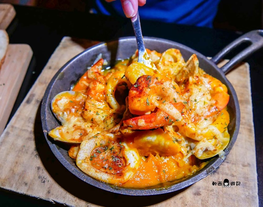 來自義大利傳統的麵疙瘩,搭配蛤蠣、花枝、鮮蝦等新鮮海鮮,可以吃到滿滿南瓜泥和濃郁起司,有著南瓜甜、海鮮鮮,還有隱藏其中微微肉桂粉香氣。