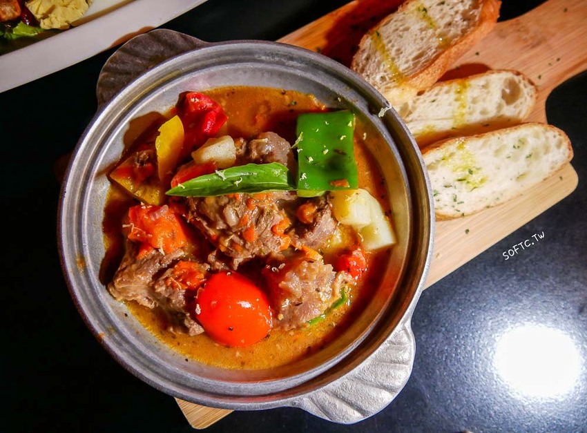 傳統希臘風味的燉牛肉,慢火將牛肉燉得相當軟嫩,但是又不失嚼勁,保有肉塊的紮實口感。除了吃起來有著檸檬偏酸香氣,還有相當搶戲的青椒甜椒蔬菜椒甜味,喜歡青椒甜椒的絕對不能錯過這道。