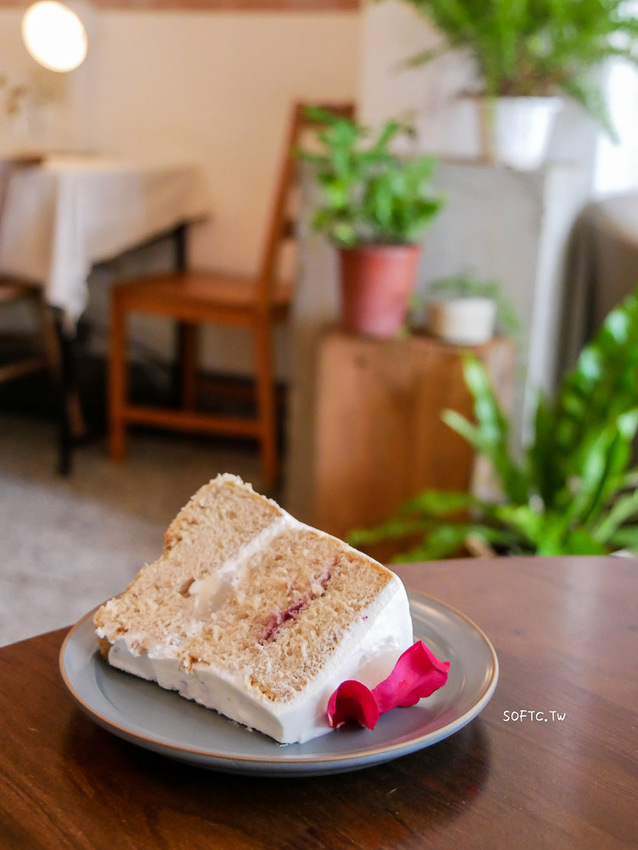 這漂亮的玫瑰戚風會讓我想到上次去I met you也是有漂亮玫瑰戚風,不過果果的怎麼有點可惜是倒下來的啦哈哈XD果果的戚風吃起來挺濕潤的,鮮奶油細緻順滑,除了淡雅玫瑰香,裡頭真的有一塊塊荔枝果肉,隱藏在戚風中香甜飽滿增添果香,果肉Juicy令人眼睛一亮。沒想到優雅玫瑰和熱情荔枝也能如此合拍。