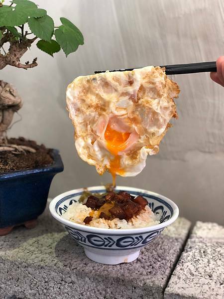 吃滷肉飯當然不能少了半熟蛋,把荷包蛋戳破後,濃稠的蛋黃留下來