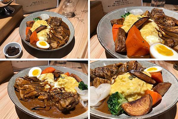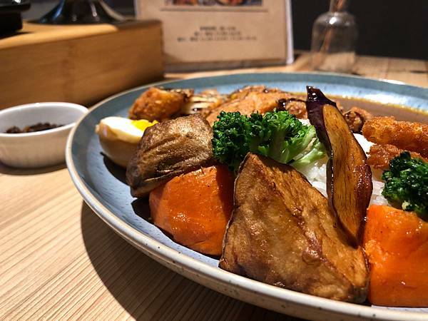 好吃的咖哩飯當然要有很多蔬菜,用烤的馬鈴薯、紅蘿蔔、茄子、半熟蛋沾上咖哩醬都超好吃