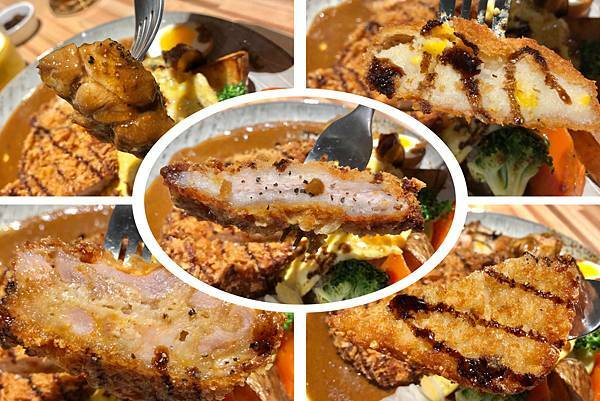 豬排外皮卡滋卡滋相當可口,淋上豬排醬吃起來酸酸甜甜,上頭還有豐富的烤蔬菜鮮嫩多汁