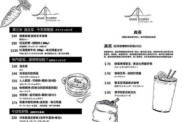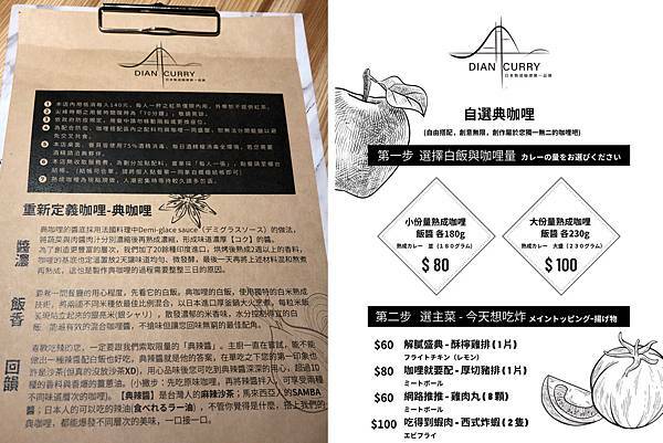 典咖哩菜單/典咖哩價目表