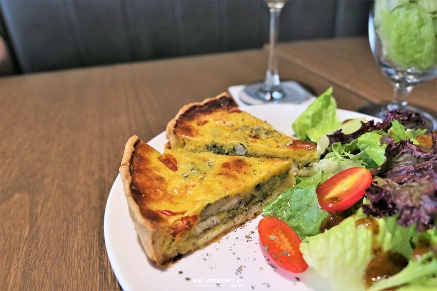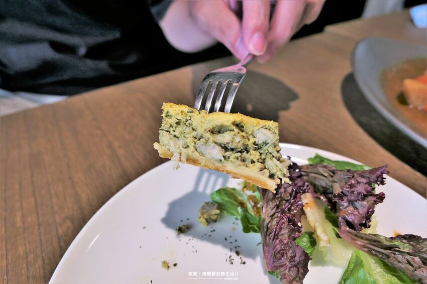 塔香雞肉鹹派被我們譽為當天第一名,醃到入味的雞肉與九層塔兩樣食材完美融合,每一口都能感受到九層塔微微不過多的香氣,雞肉也很嫩,整個鹹派口感很軟,吃起來很像蛋糕,塔皮也是烤的酥脆,與綿軟的鹹派內餡兩種不同口感,尤其塔皮內加了番茄還讓口味更豐富。(一開始以為紅色的是辣椒沒想到是番茄覺得驚喜)
