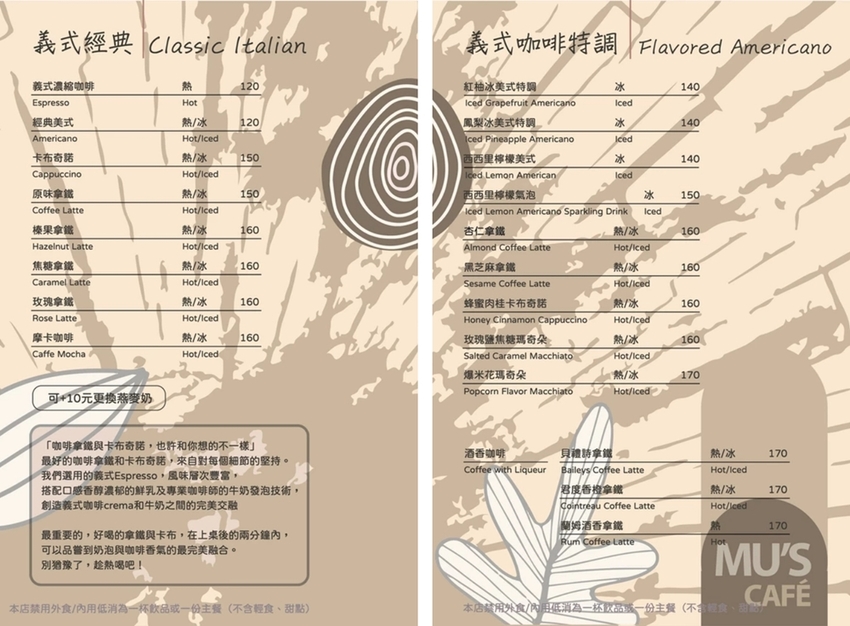 木色藝文咖啡也販售自己調配的咖啡豆,比較吸引我的是咖啡豆的命名方式是以古典樂曲命名,我自己比較喜歡有輕快曲風的嬉遊曲,但真的很好奇嬉遊曲的咖啡豆會是什麼風味。XD