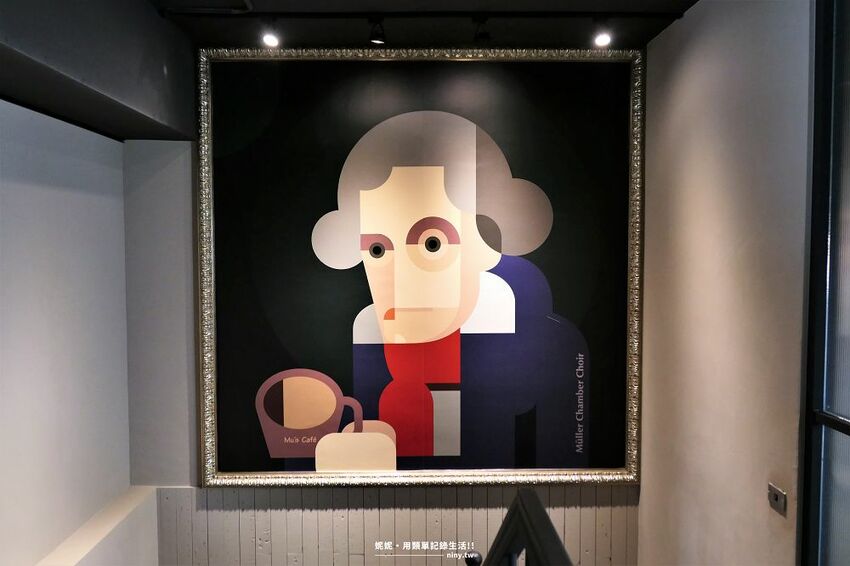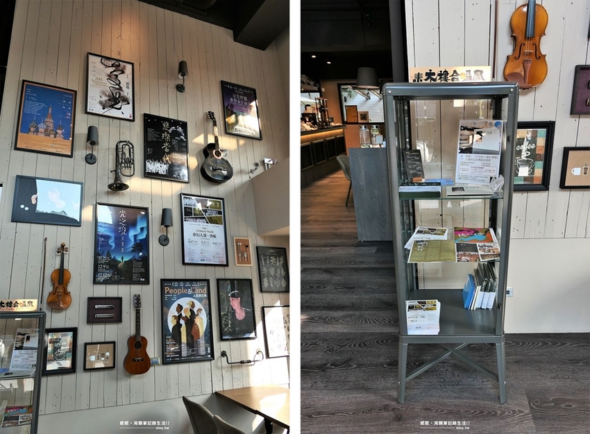 除了一樓有關木樓合唱團的海報外,樓梯間以及二樓牆面都有畫作,是由合唱團內身兼設計師的團員的收藏,挑選了幾幅與音樂以及咖啡相關的畫作掛在這裡,與咖啡廳有很好的搭配。