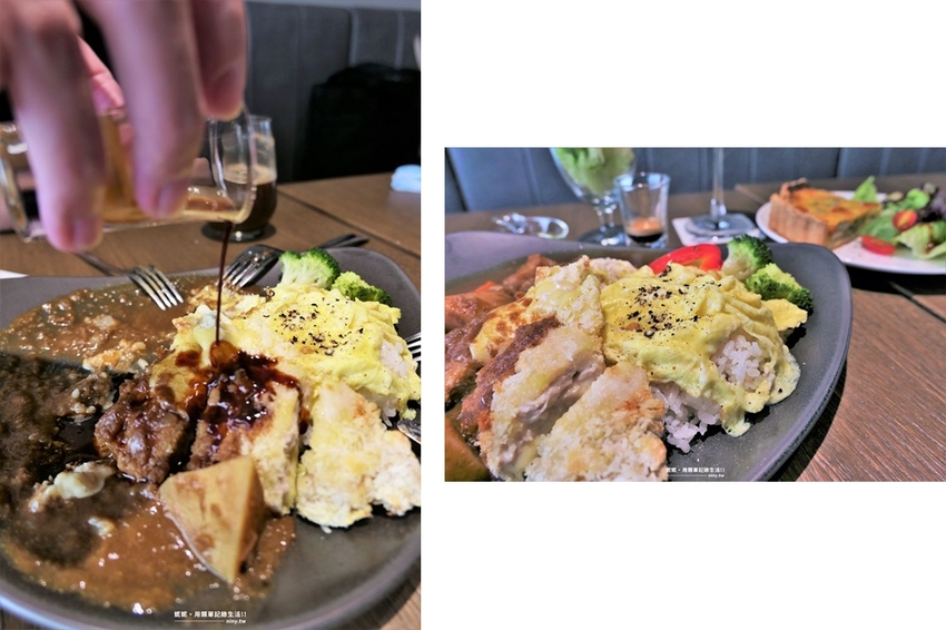精選主餐選了V21咖哩藍帶起司豬排, 是一款結合V21濃縮咖啡的咖哩豬排,人生中吃過不少次豬排咖哩但也從來沒有加濃縮咖啡一起吃是個很特別的經驗,豬排與咖啡的結合雖然無法聯想起來但卻意外搭,而沒有加咖啡的豬排吃起來的口味中規中矩,不過也不會太膩,另外紅蘿蔔與馬鈴薯也燉的很軟,幾乎是用叉子一切開就能輕易分離,不喜歡吃馬鈴薯硬口感的男友都主動吃起來了。