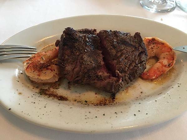 姊妹點了菲力牛排 (6 oz.)佐鮮蝦