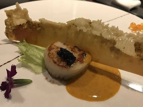 最後夾在干貝中間 成了北海道干貝佐義大利佩克里諾起司