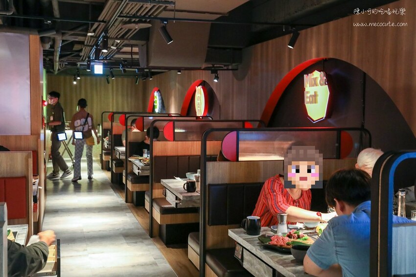 新型態「Oh my!原燒」裝潢以紅色及白色為主軸,擁有非常chill的放鬆氛圍,桌距間隔寬敞舒適,雖然現場將近100個座位,建議來訪務必訂位,連平日都快客滿,生意很好。