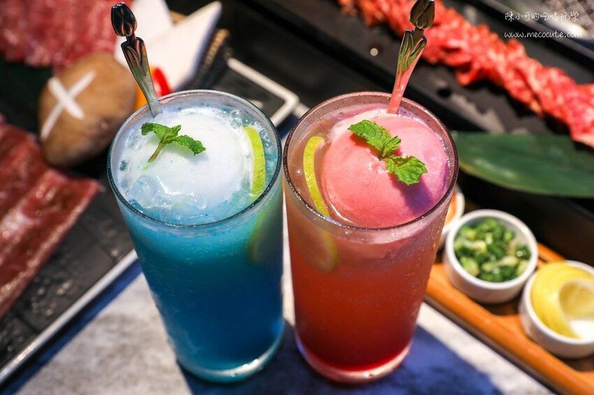美麗漸層的飲品是飯後解膩的好朋友,兩杯飲料微酸微甜,尤其是蔓越莓口味,滋味清新。