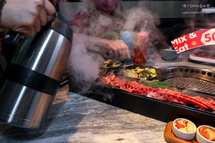 「50cm華麗巨星鑽切牛」套餐除了鑽切牛有專人代烤,其他的都是自己烤,不用擔心會烤焦,非常好掌控熟度,而且工作人員換烤網非常勤,加分。