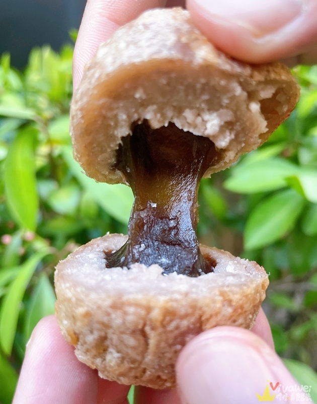 ▲黑糖麻糬熱熱的馬上吃~就可以看到這牽絲的口感喔!麻糬包在芋頭球裡面~口感QQ的~據說他們的紅豆麻糬口味也好吃~下次我也想吃吃看啦☺