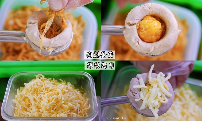 ▲為了要照顧素食的朋友~老闆娘特別選了素肉鬆~想不到用素肉鬆加蛋黃的組合也很搭~吃起來雖然沒有葷的肉鬆來得鹹香~但是吃起來比較清爽!用料很實在🥰