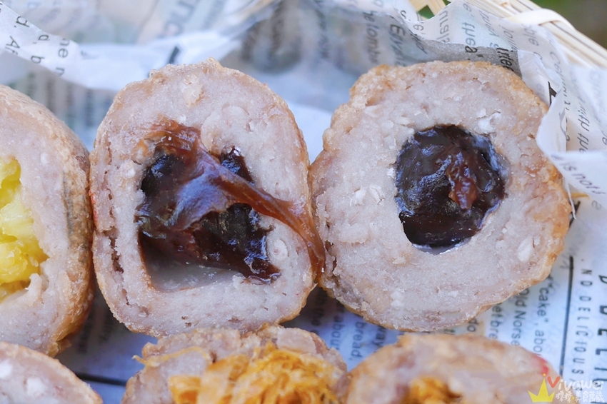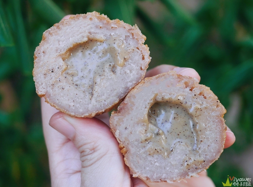▲芋頭球內包入奶黃餡料還蠻搭的~鹹鹹甜甜的~有種在吃港式奶黃包的FU!而店家自己熬煮的流沙蛋黃餡有爆漿的口感~入口時要特別小心唷!