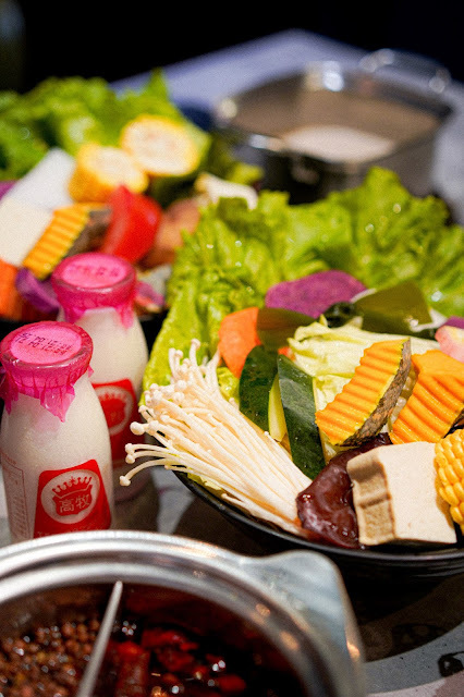 愛吃辣的朋友點了四川麻辣鍋,濃厚油牛與花椒味涮牛肉超過癮,因為辣度蠻足的,朋友只敢把蔬菜往我們其他鍋丟,剝皮辣椒鍋則是帶有頗重的醬油味,如果剝皮辣椒的味道能再明顯點就更好了~